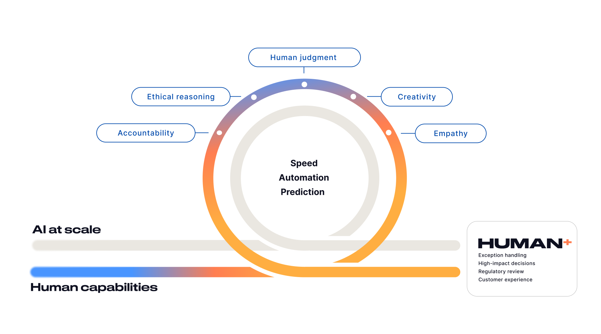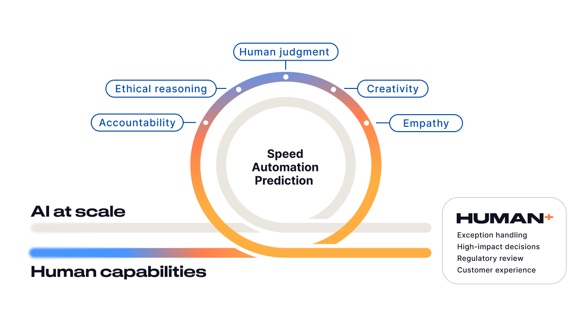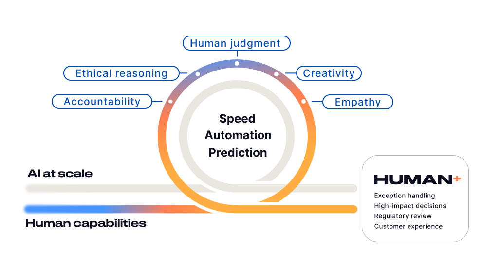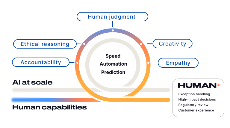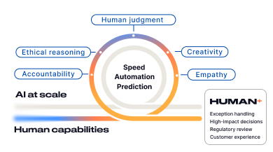 That’s why our Human+ approach to this rapidly evolving technology is a core pillar of DXC’s Xponential AI orchestration blueprint. The companies that currently win with AI are grounded in a strategy that develops their people and their technology in tandem, putting humans at the heart of AI deployment to drive results.
